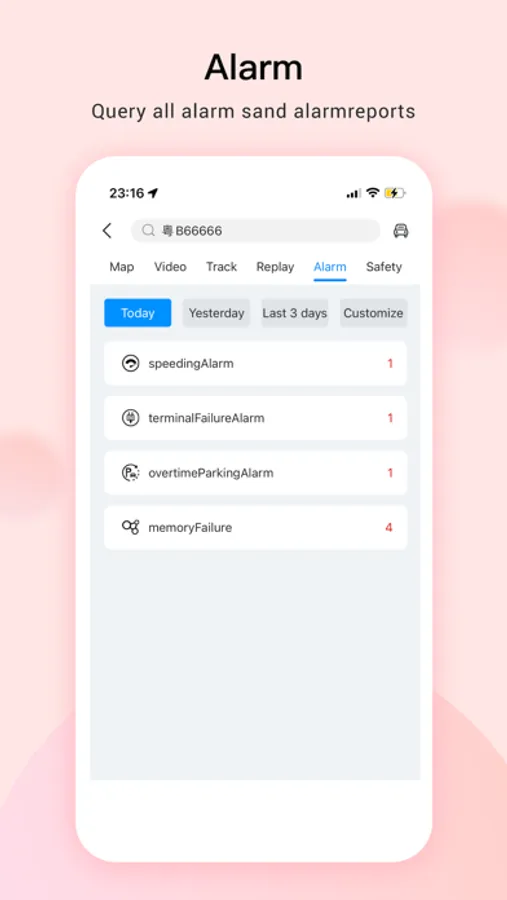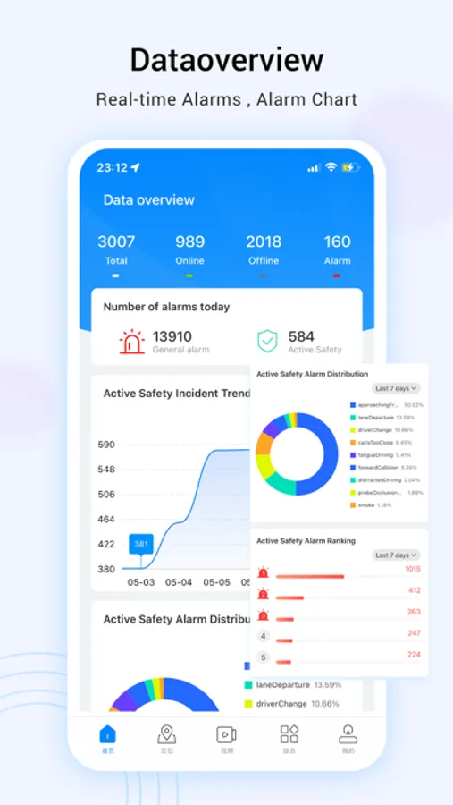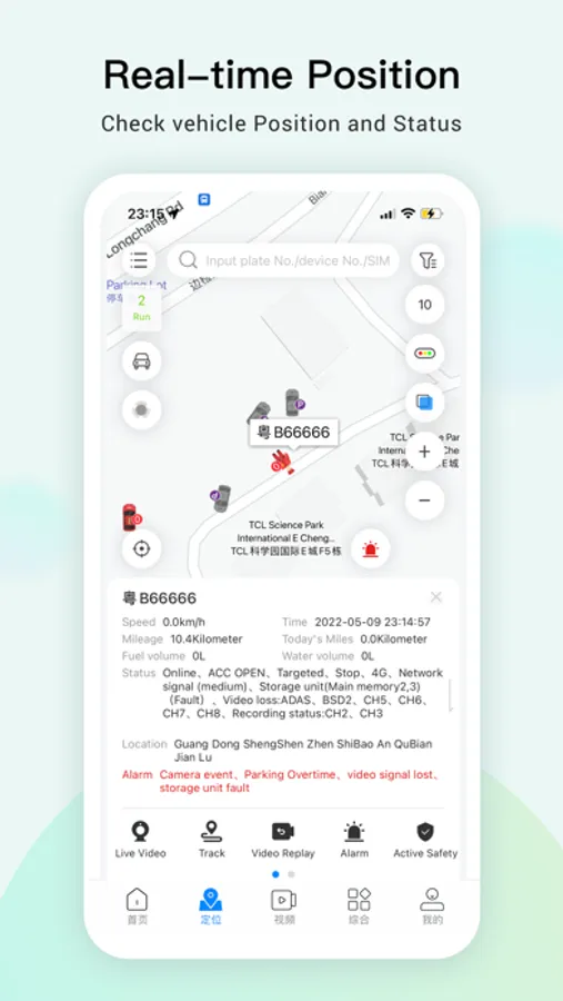 ● Intuitive module to show online/total/alarm vehicles;