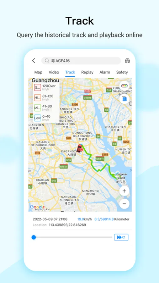 ● Query the historical track of the vehicle and playback online