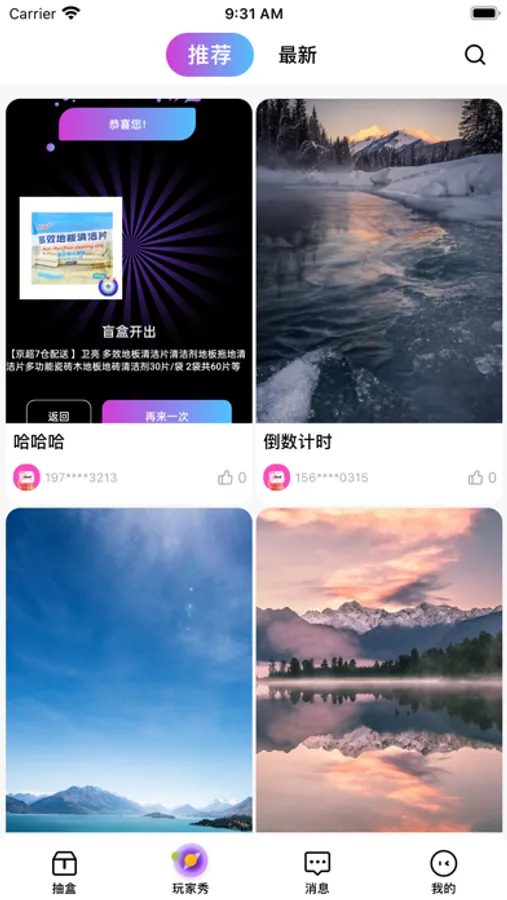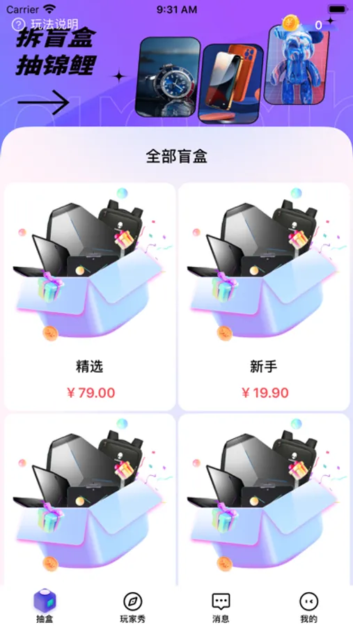 APP内包含多种类型的盲盒,每种盲盒包含各种商品,通过购买盲盒来抽取商品,价格更加实惠,为您的生活增加小惊喜。