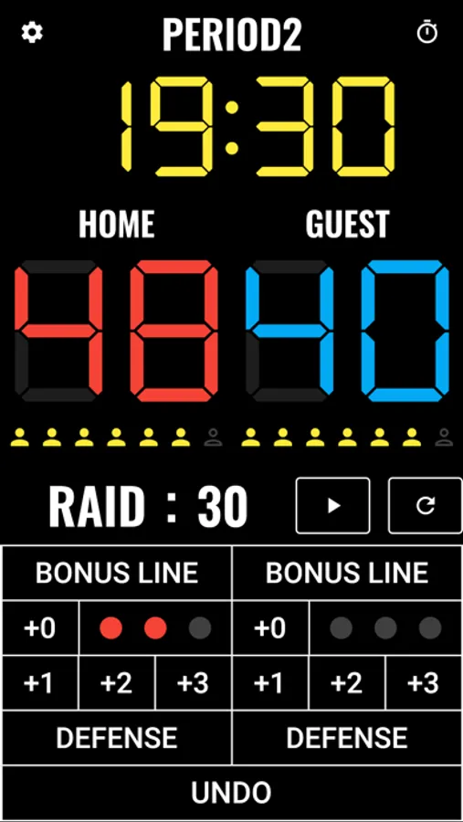 +2 button: 2 points are scored. The number of remaining players on the opposing team is reduced by 2.
