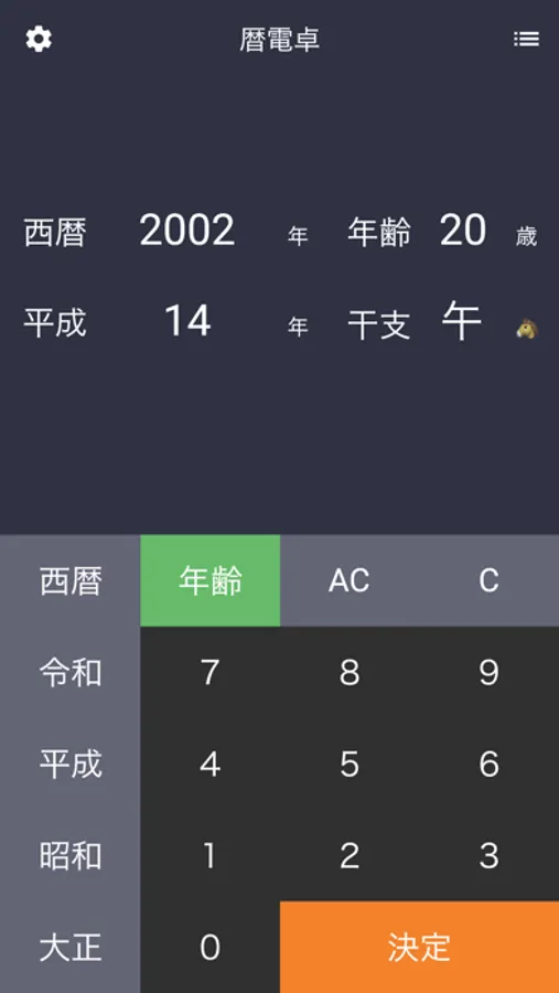 西暦・和暦・年齢・干支をすぐに調べたい時に役出す電卓アプリ。