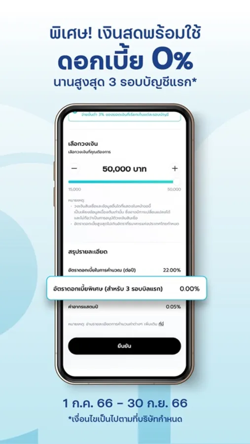 วงเงินสูงสุด 1.5 ล้านบาท* สมัครวันนี้ผ่อน0% นาน 3รอบบัญชีแรก* 1ก.ค.66-30ก.ย.66