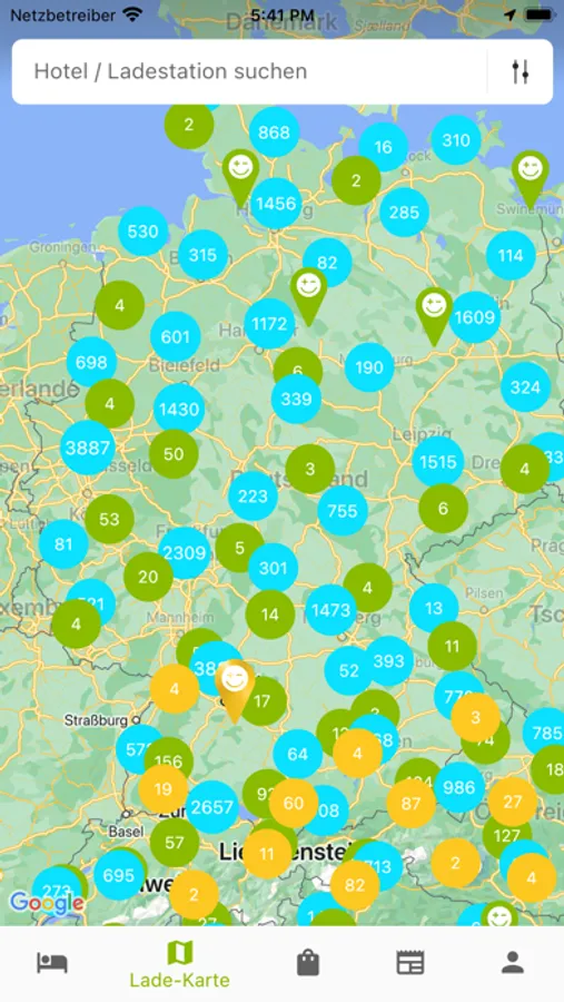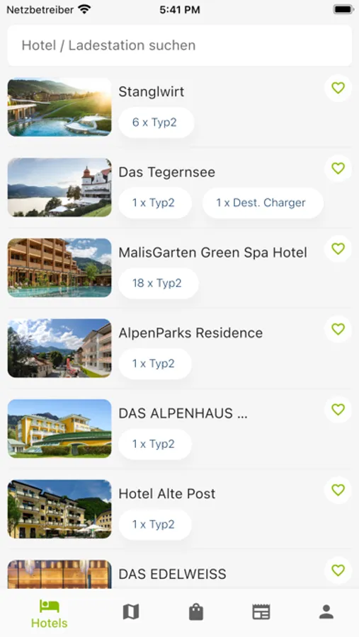 Auswahl von mehr als 3000 kategorisierten EmobilHotels mit Ladestationen