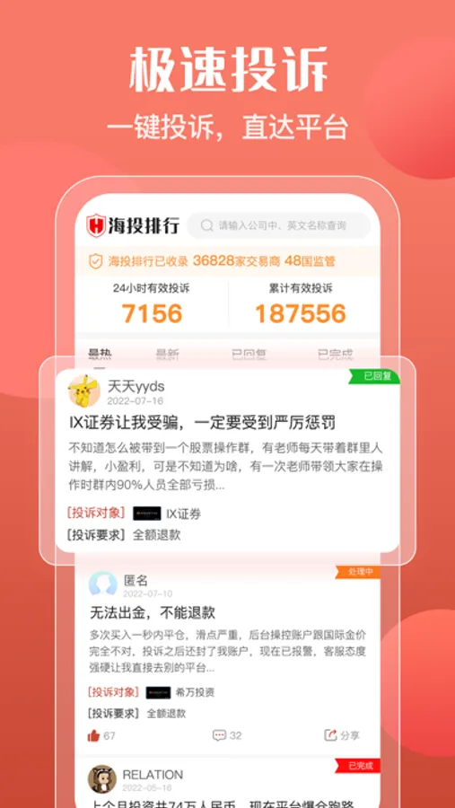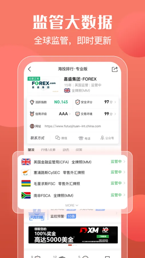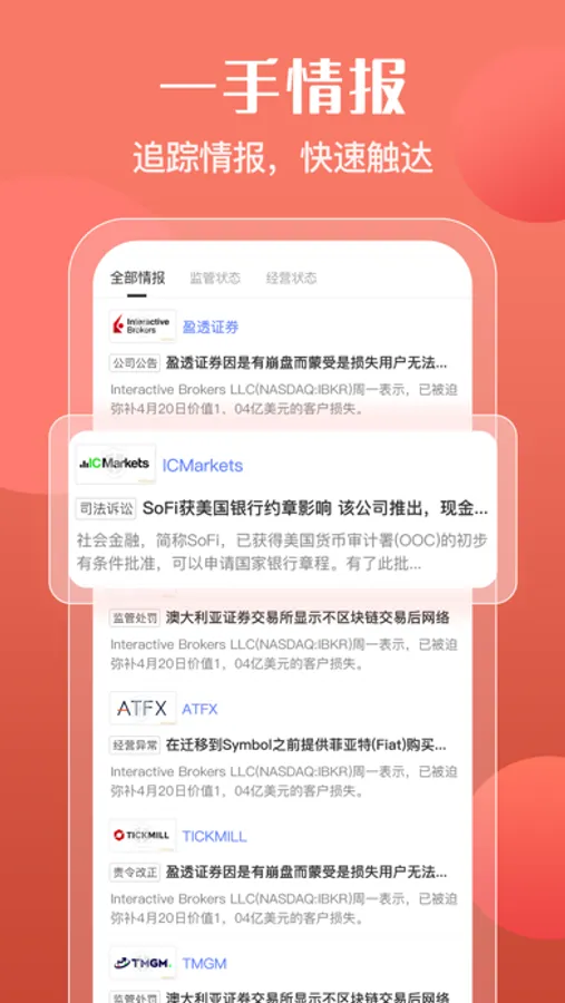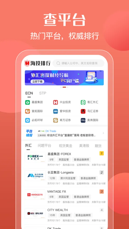 海投极速版对全球平台进行24小时全天候的实时监控,汇集海量公司经营数据,通过多维度,多层级处理,将最有价值的行业信息分享给用户,并通过分析置顶平台评级机制,帮助用户轻松洞悉公司最新动态,远离行业黑幕及虚假信息。