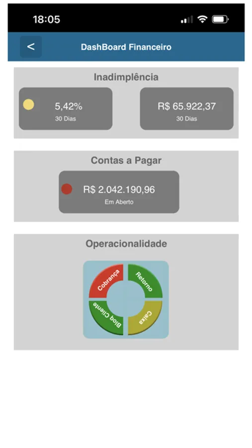 Com ele você consegue acessar o cadastro de clientes, indicadores de desempenho(Índice de inadimplência, relação de valores em aberto, valor que a empresa faturou até o dia atual) entre outras funcionalidades do nosso ERP.