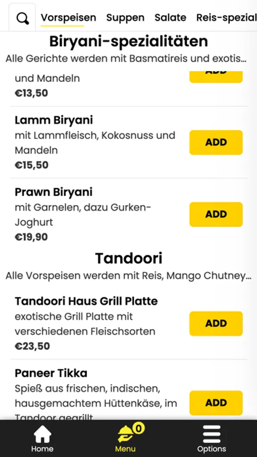 - Durchsuchen Sie die Speisekarte des Restaurants und sehen Sie sich alle anpassbaren Optionen im Voraus an