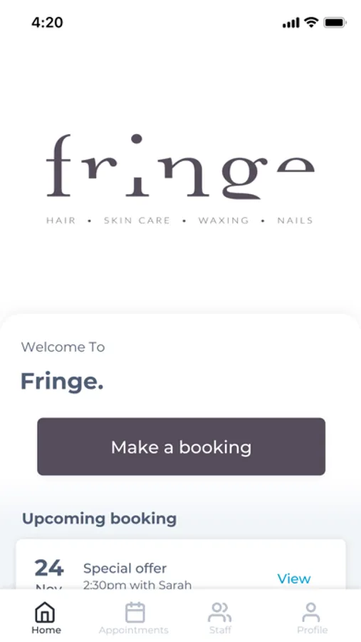 The Fringe. app makes booking your appointments and managing your loyalty points even easier. You're just a few taps away from feeling good and looking great!
