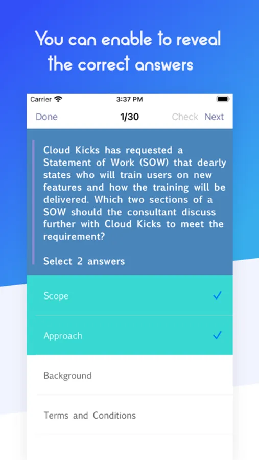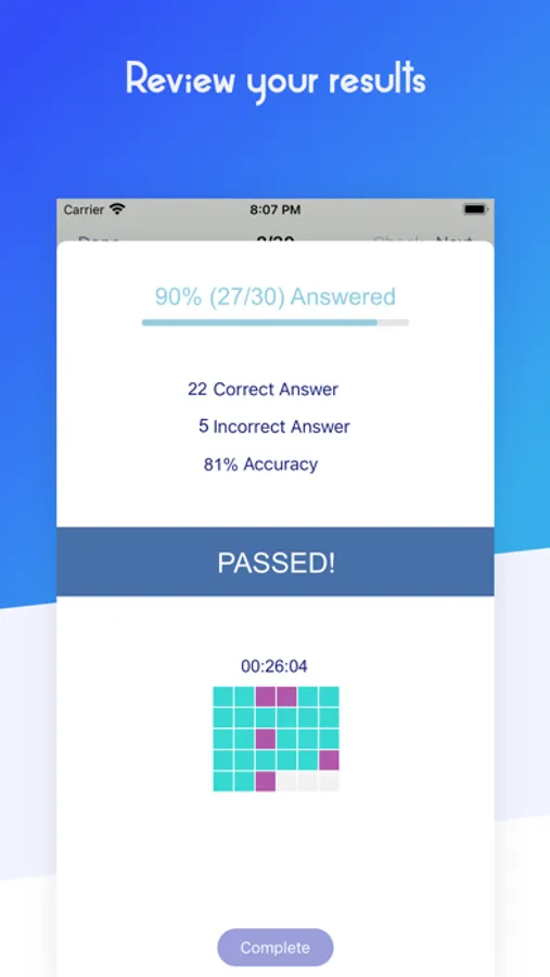 * Exam mode - 60 randomly selected questions under the time pressure of 90 minutes