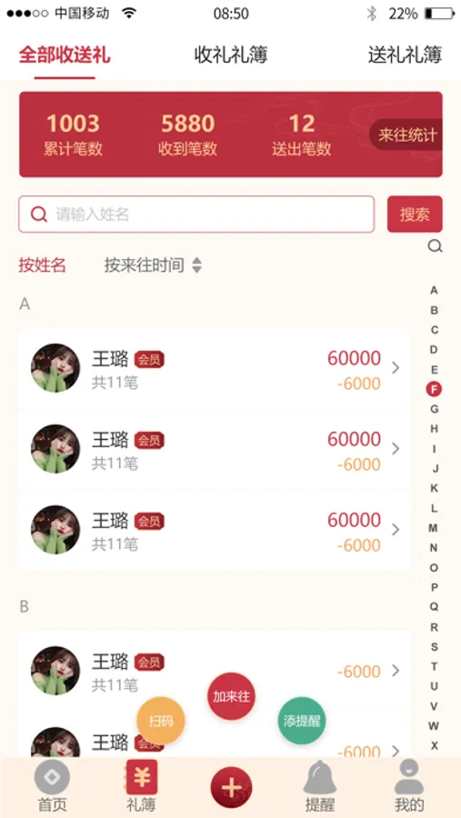 《礼尚记》是一款最新的在线人情账辅助记账工具,结合传统实体礼簙样式,具有适时记录、一键查询,重要事件二维码一扫录入,生成即时在线通知、离线闹钟提醒等功能,为用户提供极简、极易、极适用的礼情管理!