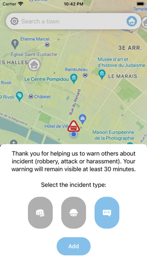 * Come and help us warn users of imminent danger of harassment, theft or physical assault.
