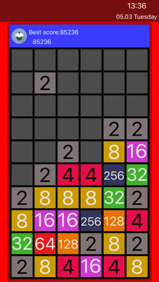 Biggest area to play according to the size of screen.Play endless until no moves.