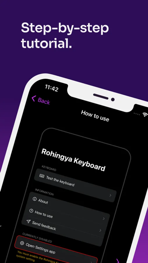 The Rohingya Keyboard is an iOS keyboard extension for the Rohingya language. I designed the keyboard layout as simple as possible for typing, with built-in 4K+ word suggestions and 14 commonly typed phrases for the Rohingya language. You simply download the app and enable "Rohingya Keyboard" in your Settings or you just launch the app and tap on the "How to use" section for simple step-by-step instructions.
