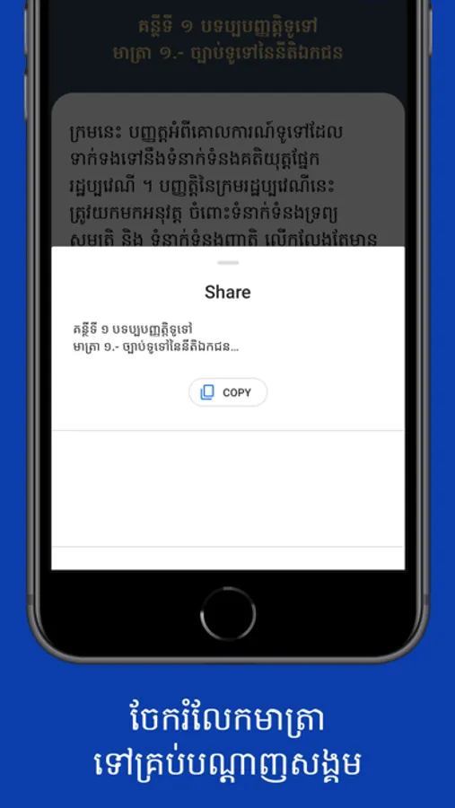 The Cambodia Civil Code mobile app is designed for everyone to improve the accessibility and readability of Cambodia Civil Code.