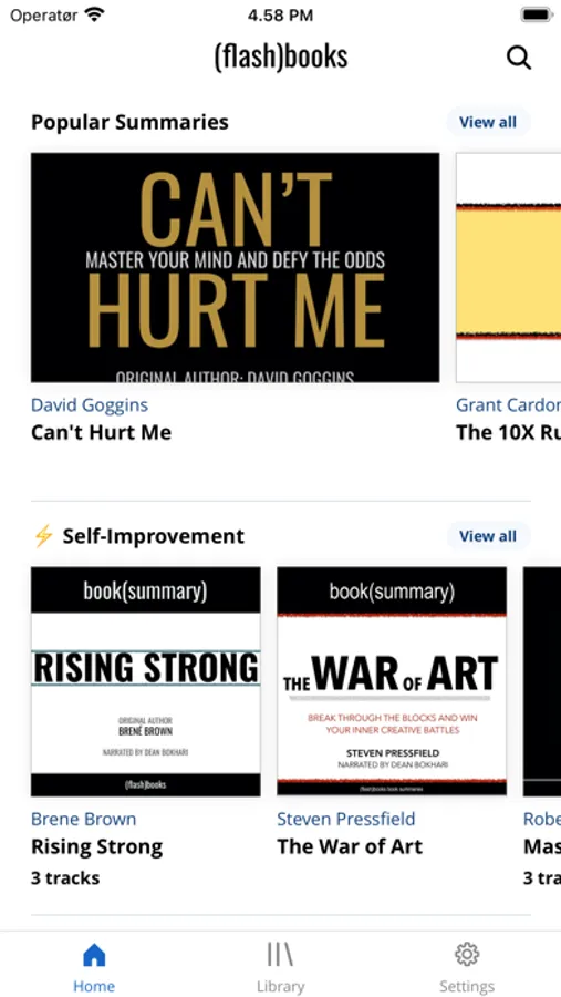 Get actionable insights from best-selling Self-Help and Business books. Our summaries include an actionable insight with every Big Idea so that you can put your newfound knowledge to good use. With a wide range of topics to choose from, you'll always have something to learn about and take action on: Self-Improvement, Habits, Motivation, Leadership, Productivity, Negotiation, Money, Career, Business, Love, Social Skills, Relationships, Networking, Goal-Setting and more!
