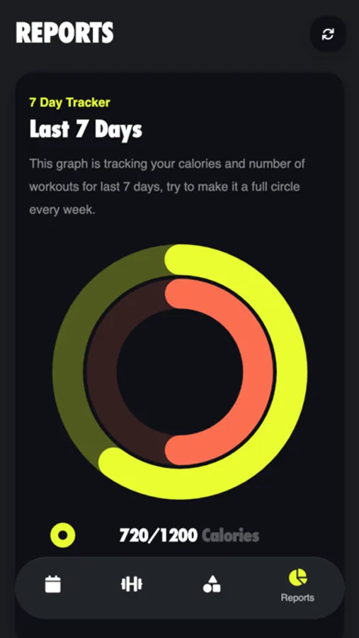- Reports makes it easy to follow your workout completion, progress, and total calories burned.