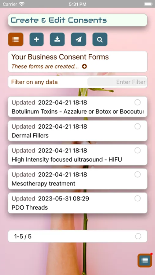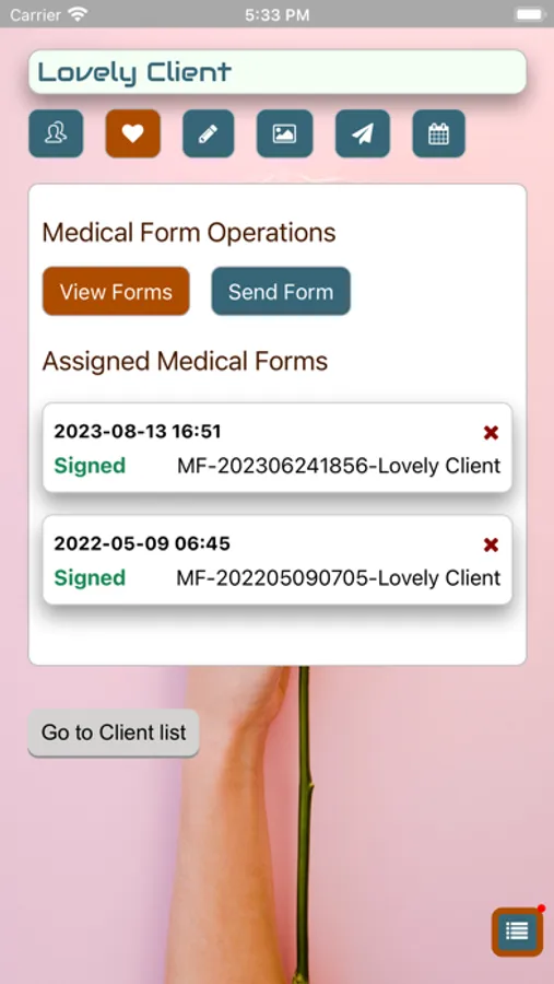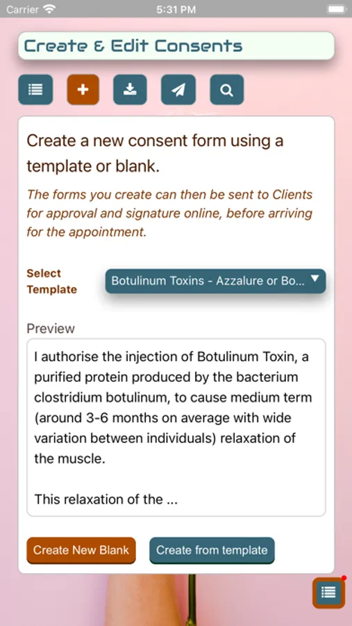 Clients Records and Forms App provides consent form creation from templates, authoring of medical questions for patient history, therapy image uploads, appointment bookings, the sending of online forms to clients for completion with signatures and a business portal where patients can sign up, make bookings and communicate with your practice.