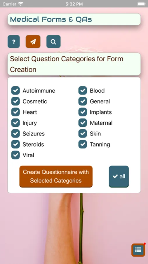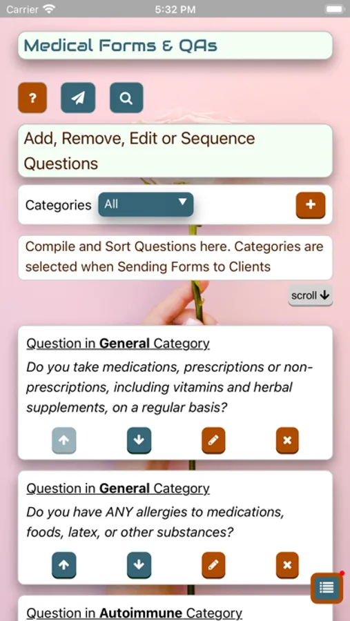 - the management of questions and categories for medical questionnaires and patient medical history.