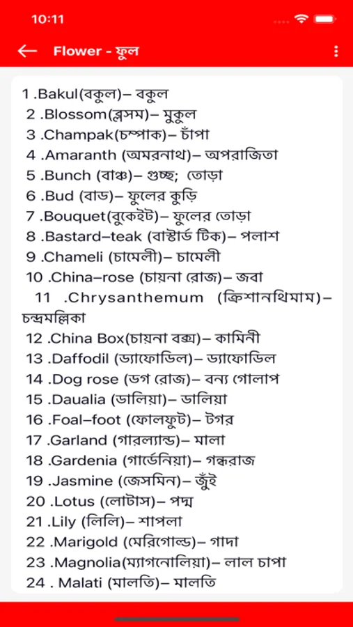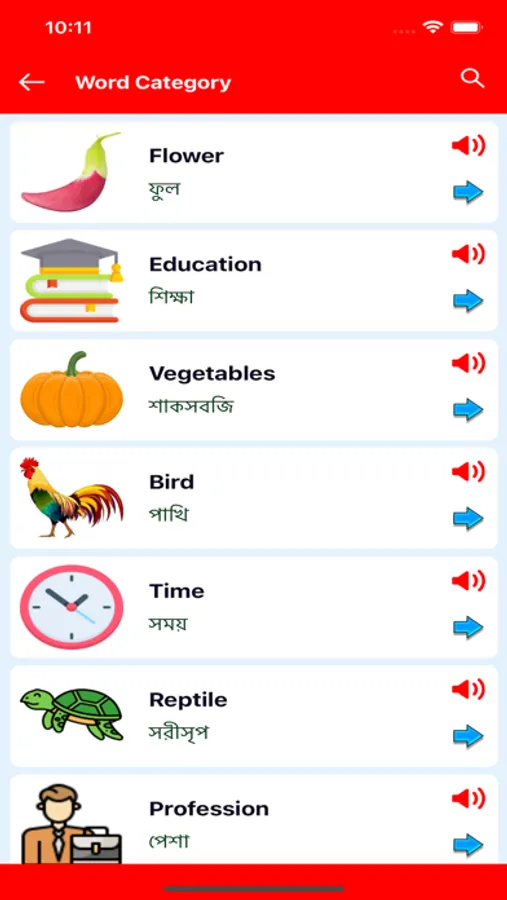English to bengali or bangla word book with favorite options. Words are divided into categories so that you can learn them very easily. With the favorite options separate important words and study them. There is a pronunciation options on the app with that you can improve your speaking and listening of English