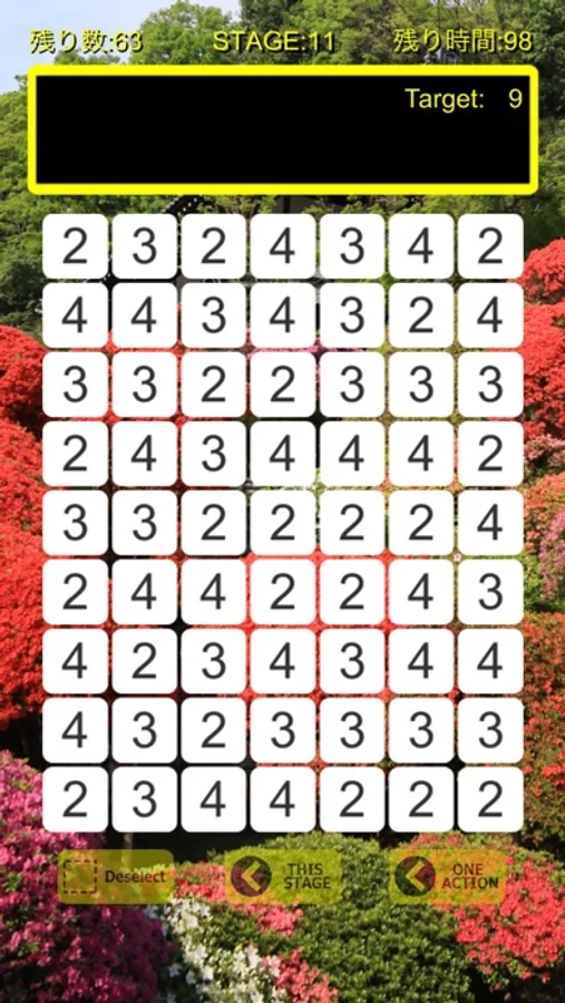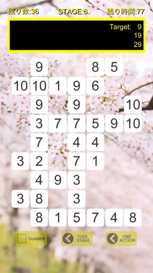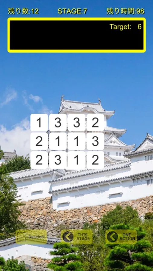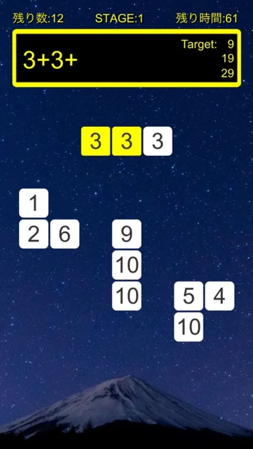 表示される数字を3つ選び、合計を決められた数と一致すると、枠がクリアされます。