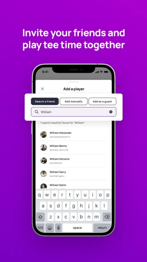When you’re booking for a tee time, you can invite your friends and family into the flight and have the bookings confirmed for them when payment has been made. Simply search for them by username or full name.