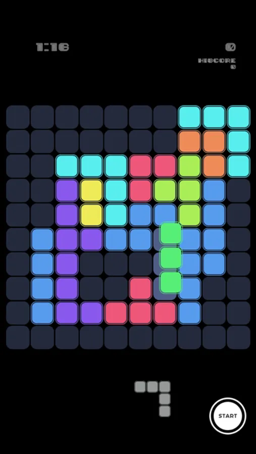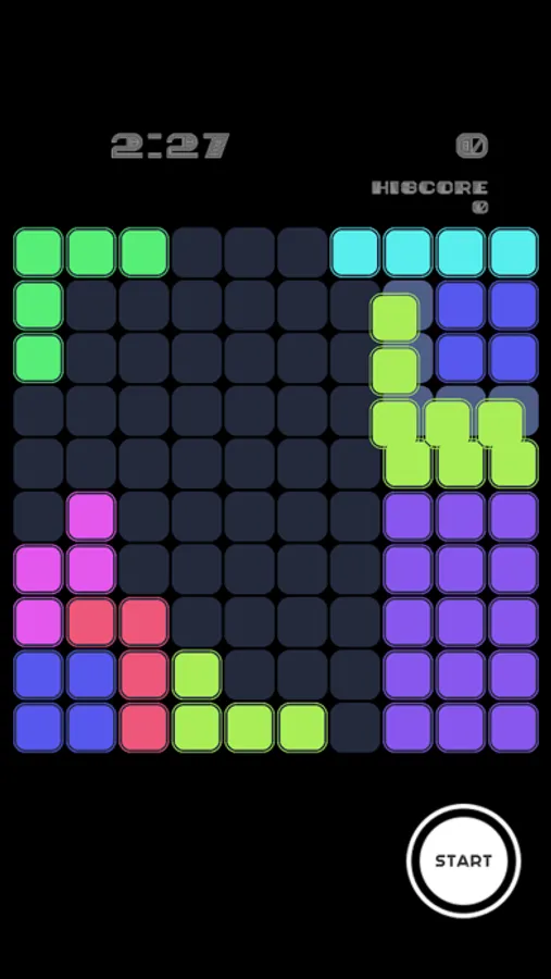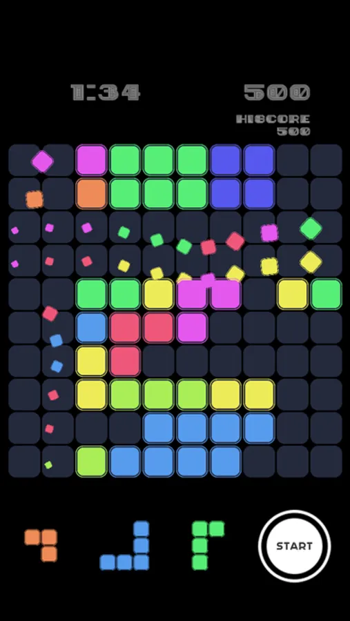 Place as many blocks as possible on the board (10 squares x 10 squares) within the time limit!