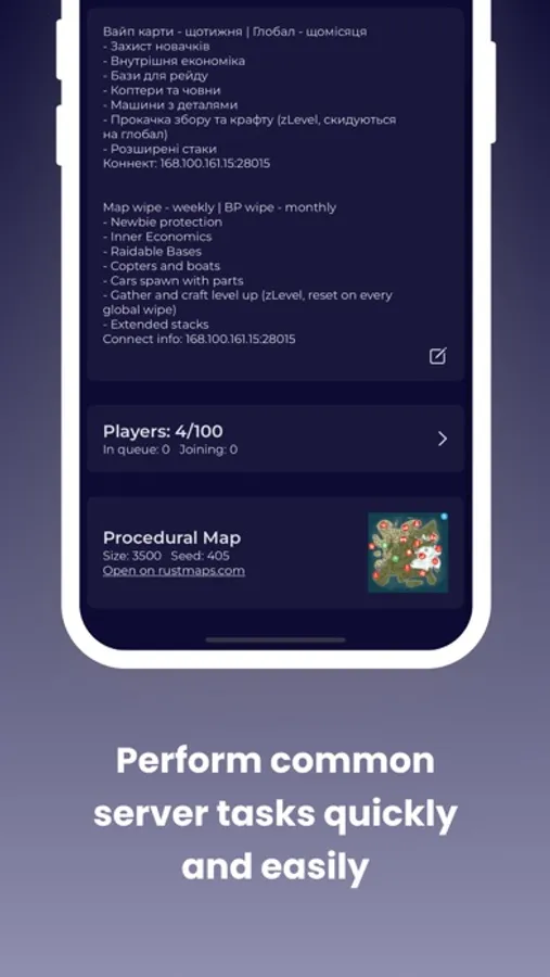 Our app is designed specifically for Rust server administrators, providing all the essential features you need to manage your server efficiently. With Rust Admin Tool, you can focus on what really matters - providing your players with the best possible Rust experience.