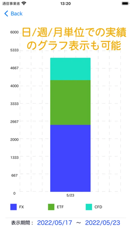 ※毎日の入力が手間な方は、1週間分/1ヶ月分の損益を週末/月末の日付に登録することで、週単位/月単位でのリスト・グラフ表示で取引推移を把握することができます。