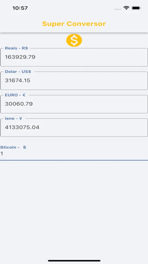 Converta um valor de moedas em reais, dólar, euro, iene ou bitcoin.