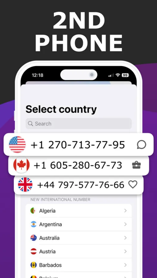 Introducing 2Phon, the app that gives you a second number to use for all your private and professional calls and texts, anywhere in the world!