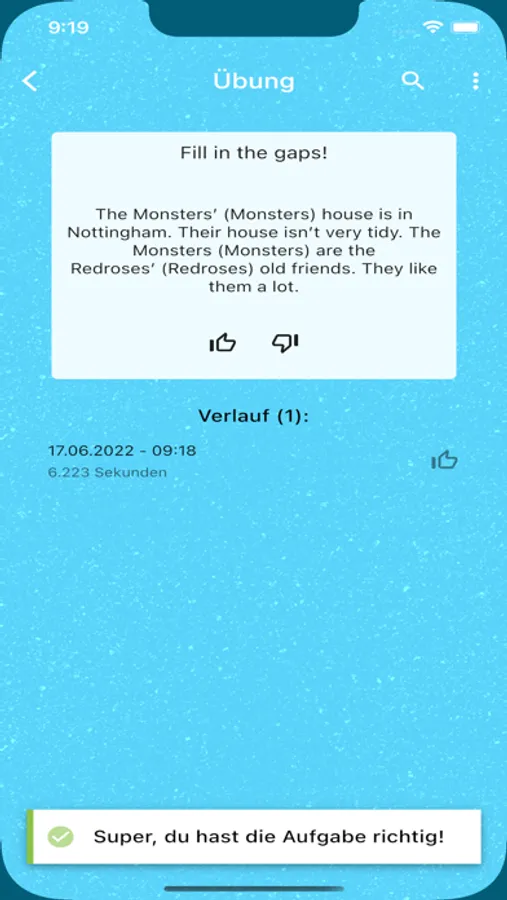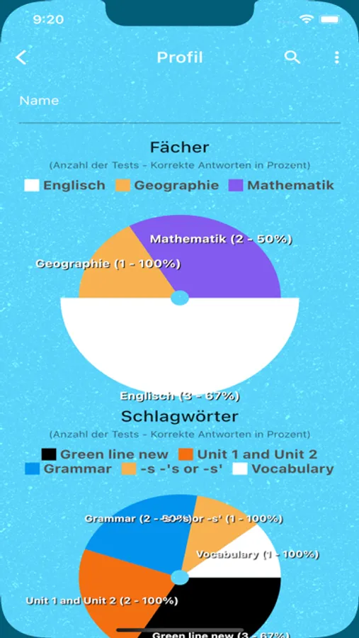 Unsere zahlreichen und ständig wachsenden Übungen ermöglichen dir gezieltes Üben und Verbessern in deinem Fach und dem aktuellen Thema. Du hast die Kontrolle über deine bisherigen Übungen und kannst deine Fortschritte nachverfolgen. Suche gezielt nach Themen je nach Fach und nutze unsere weiteren Funktionen wie zum Beispiel die Möglichkeit, deine Leistungen mit Freunden zu vergleichen.