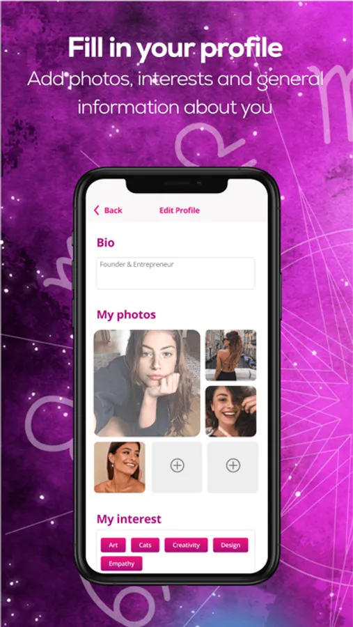 Sign up and enter your birthdate, -time and place of birth. Select photos of yourself, tell Moonies more about yourself in your profile description and select your personal interests.