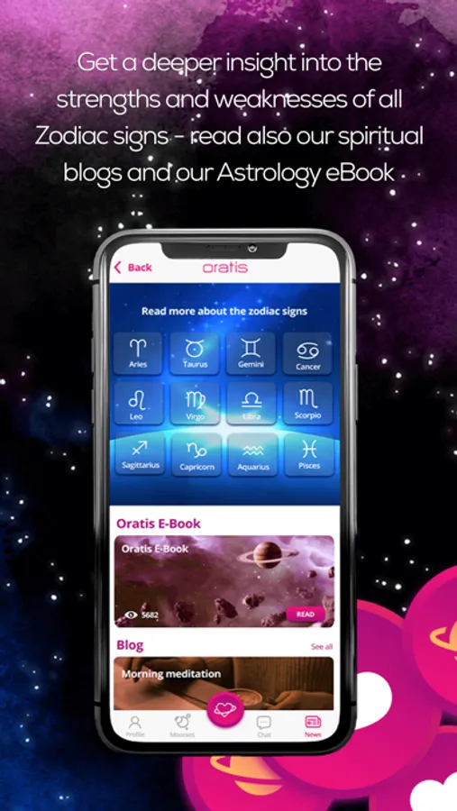 ORATIS is a spiritual dating app that focuses on individual energies and provides an astrology algorithm to help you find real people with long-term matching energies!