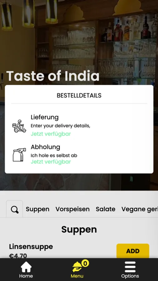 Mit der Taste of India Idstein Mobile App können leckeres Gericht bequem von zu Hause aus genießen. Stöbern Sie in unserer Speisekarte, wählen Sie die Gerichte aus, die Ihnen schmecken, und geben Sie Ihre Bestellung in Sekundenschnelle auf.