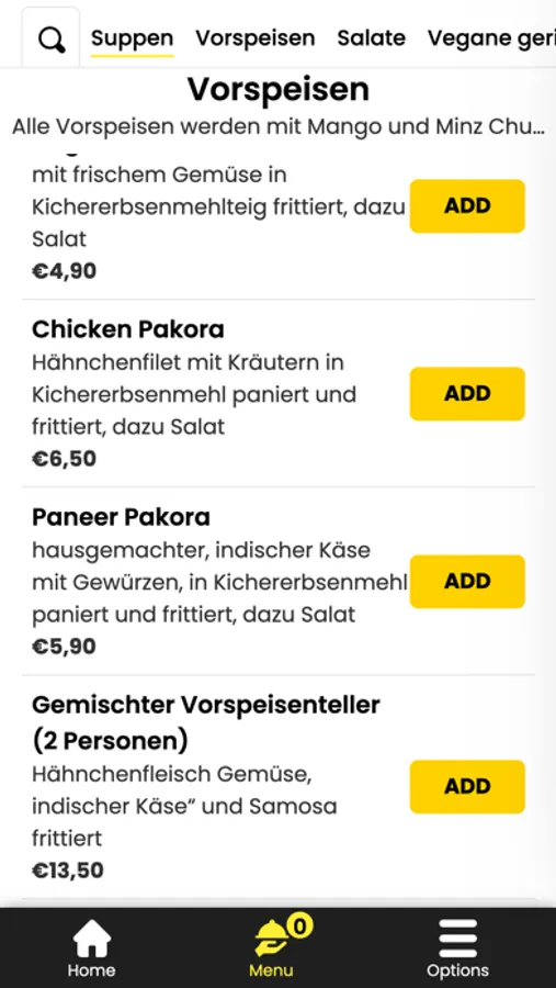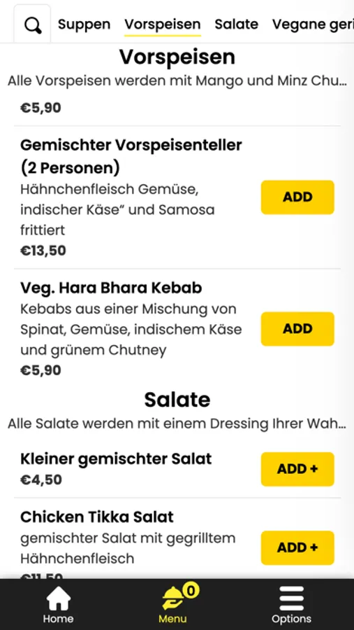 - Durchsuchen Sie die Speisekarte des Restaurants und sehen Sie sich alle anpassbaren Optionen im Voraus an
