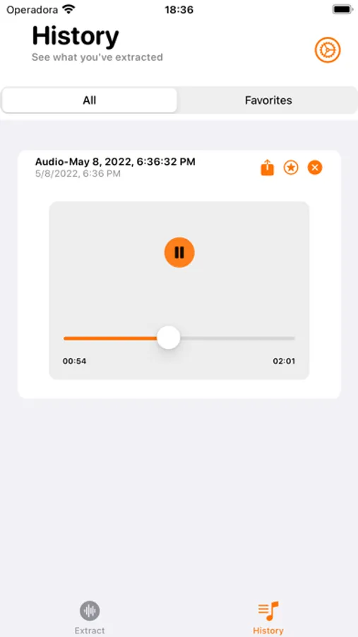 With beautiful and familiar looks, Just Audio is quick and simple. Always ready for you to extract audios, check out your previously extracted audios and ready to share any audio.