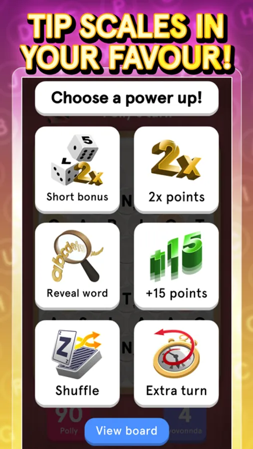 But wait - it’s not just your vocabs being put to the test in this arena! Both players have access to an array of potent power-ups that can change the very course of each match. Introduce some blank jellies into the mix, and piece together your dream word, or reshuffle the entire board and sabotage your opponent’s next big score! Be careful, however - once a power up is used it’s gone for good, so choose wisely…