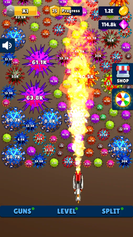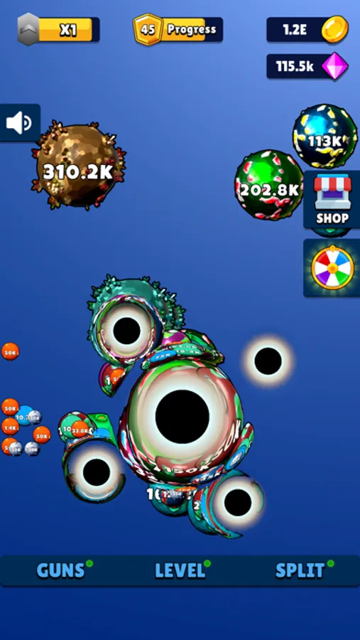 Start from small white balls. Split more and get cash to update balls to bigger ones. Change Balls to Gems or Planets in the ball blast game to have more fun. Pop more balls and go to the next level.