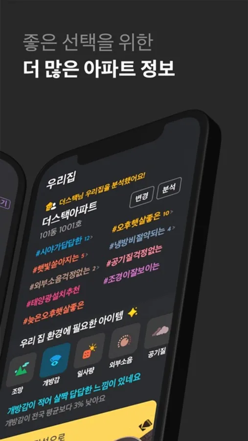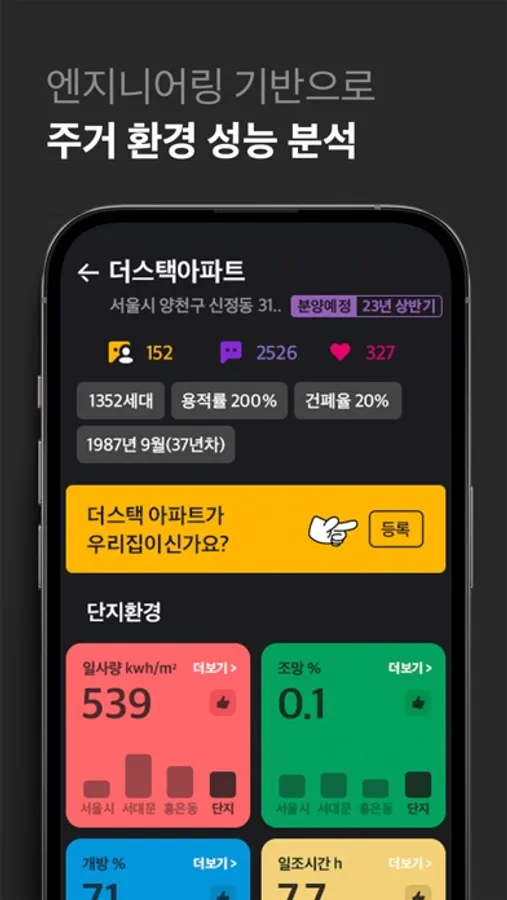 사용자가 원하는 환경 성능 조건 및 기본 정보를 기반으로 맞춤 아파트를 탐색해보세요.