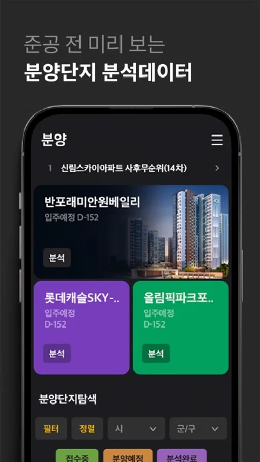 준공 이전 신축 분양 아파트의 단지 및 세대 분석 데이터를 제공해 드려요. 입주 전 세대의 주거 환경을 꼼꼼하게 확인해보세요.