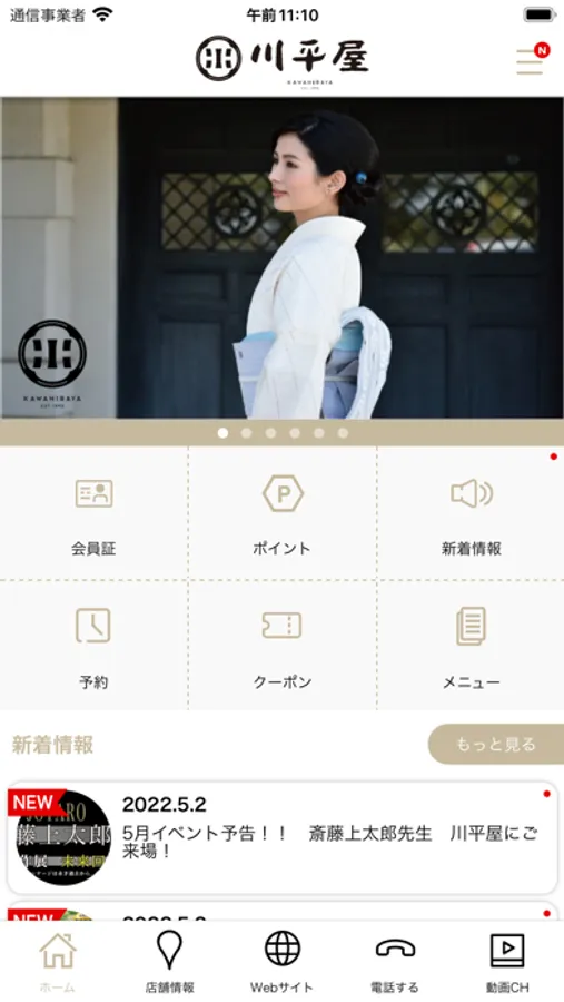 アプリを通して「川平屋」の新着情報や催事イベント情報を