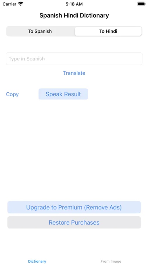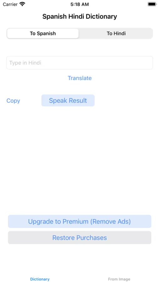 Using this app you can translate texts from Spanish to Hindu or Hindu to Spanish easily, also you can take photos and translate Hindi or Spanish texts on those pictures.