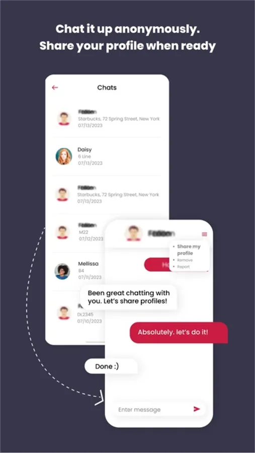 We don't just talk about privacy, we mean it. Goneby matches user posts, not profiles, based on how much they have in common. With Goneby, users don't have to share their identity or profile to match and start chatting with someone until they feel comfortable. Words matter more than images.
