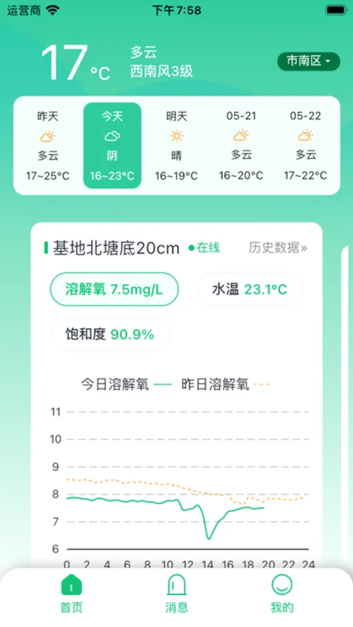 小叮塘助手APP,面向水产养殖个体和水产养殖企业,提供针对测氧仪等设备配套的监控软件,用户可通过APP,查看设备数据,并对设备参数进行设置。同时,当设备数据出现异常时,用户可接收到报警推送及语音报警电话,及时采取措施。通过物联网设备及软件的使用,帮助养殖朋友提高鱼塘管理效率,降低人工成本,降低养殖风险。