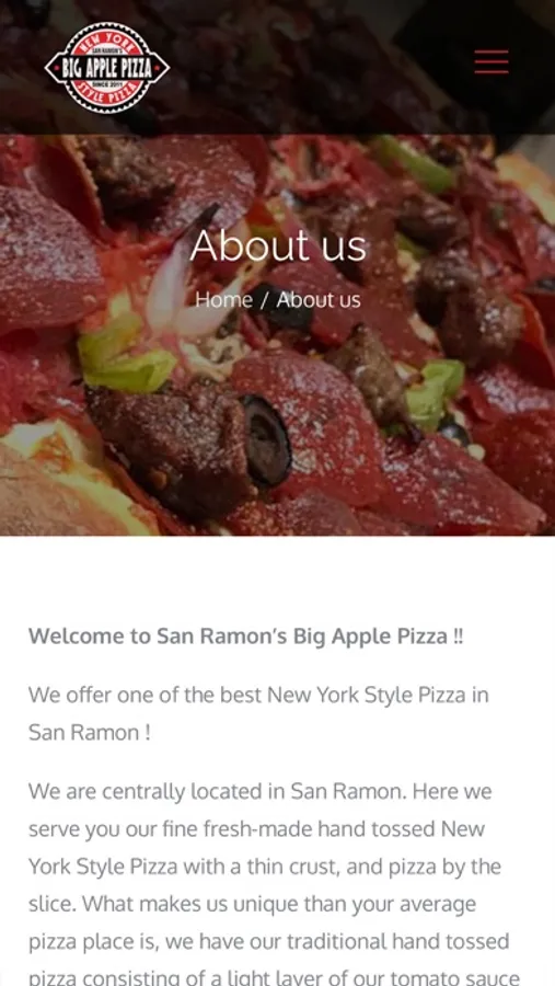 San Ramon's Big Apple Pizza, Order food Online. Variety of Calzones and Gyros, Brooklyn Cannolis, Salads and most important different types of Big apple Speciality and many more, 9130 Alcosta Blvd, Suite c, San Ramon, CA 94583, (925) 421 1111
