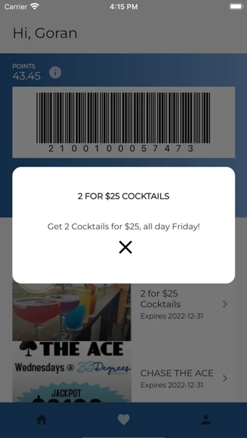 - Scan your barcode with each purchase at the venue to earn loyalty points.