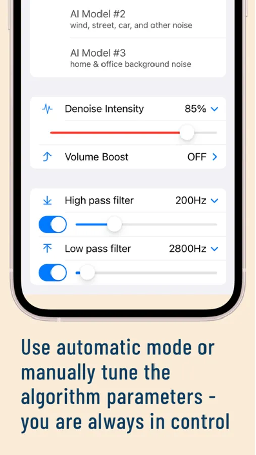 - Stay in control - select automatic mode or manually tune the algorithm parameters to meet your needs