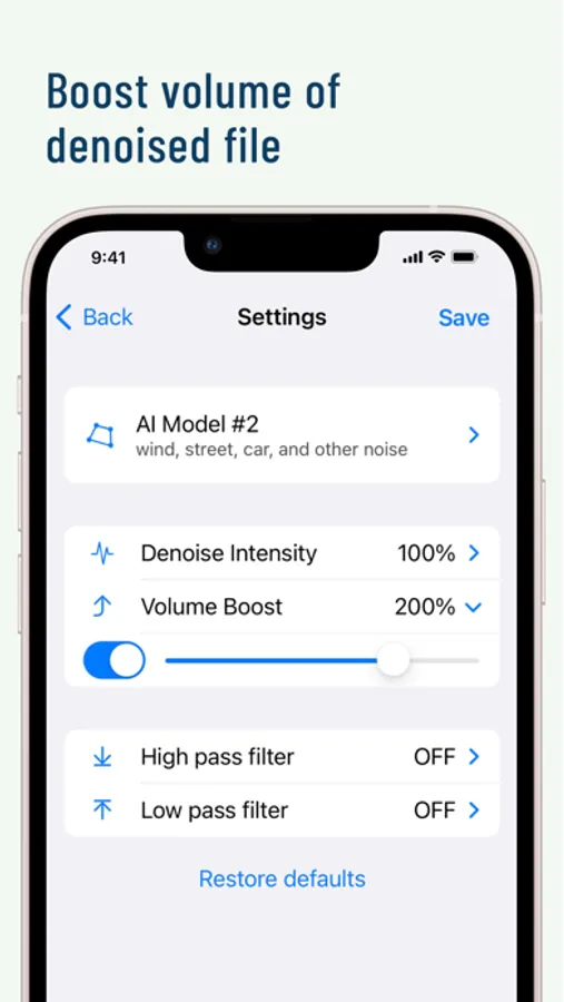 - Powerful AI algorithm effectively removes wind, street, car and other noise