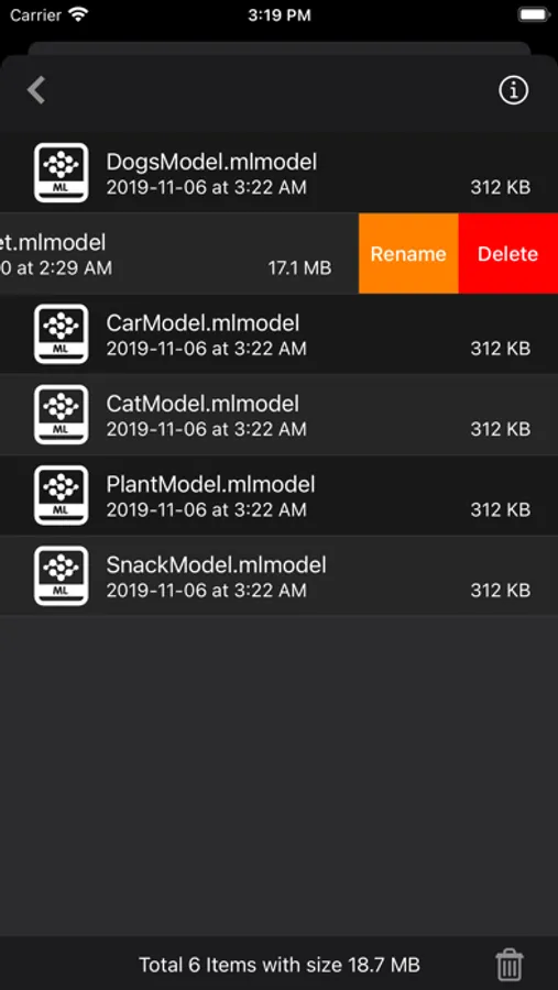 3. Go to the Library and tap on pretrain machine learning model [e.g. DogBreedsModel.mlmodel].