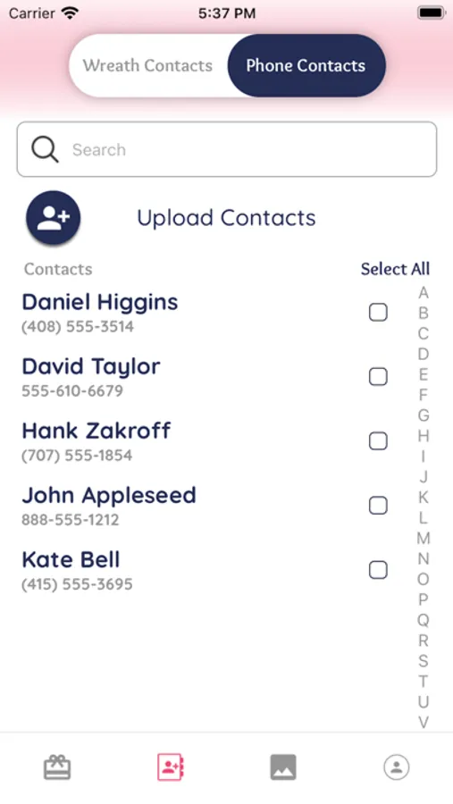 The Wreath mobile app is an inbox for all received cards on the platform, as well as a convenient way to upload photos and contacts directly to our platform.
