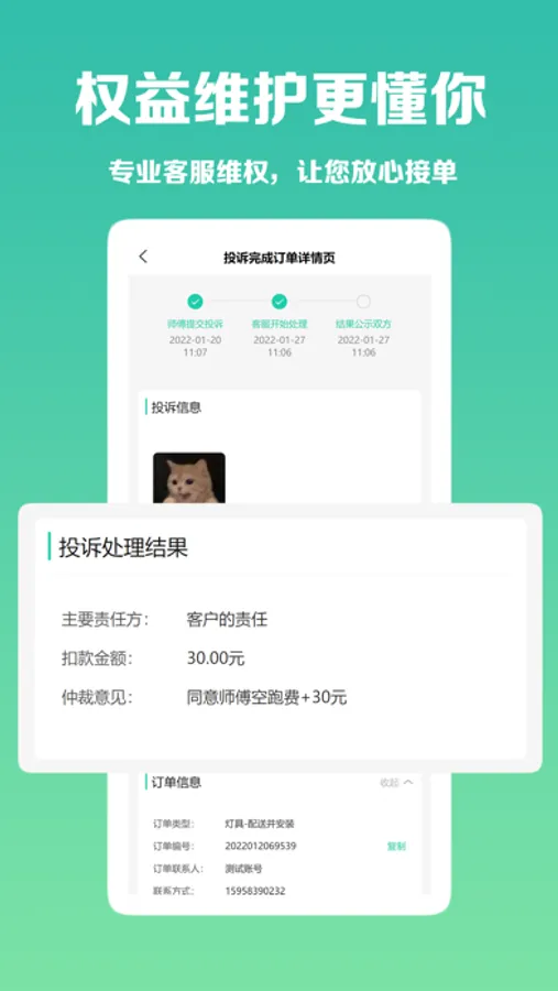 呆鸡哥人工客服全线为师傅保驾护航,让师傅接单再无后顾之忧。